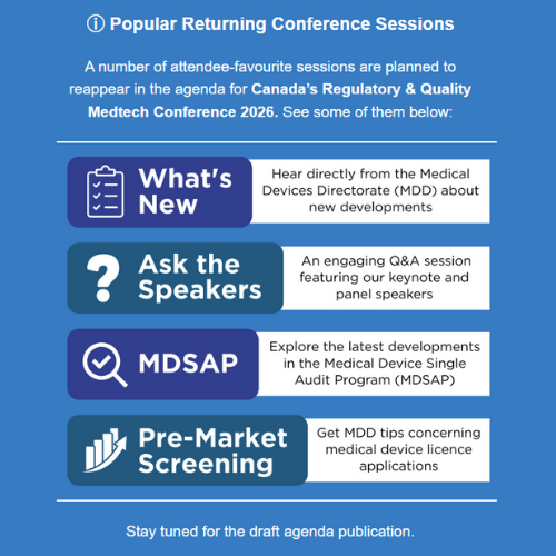 This leading event unites the Medtech industry's regulatory and quality experts for educational sessions and networking opportunities. Participants will have the chance to interact with Health Canada and other key players in a collaborative setting.